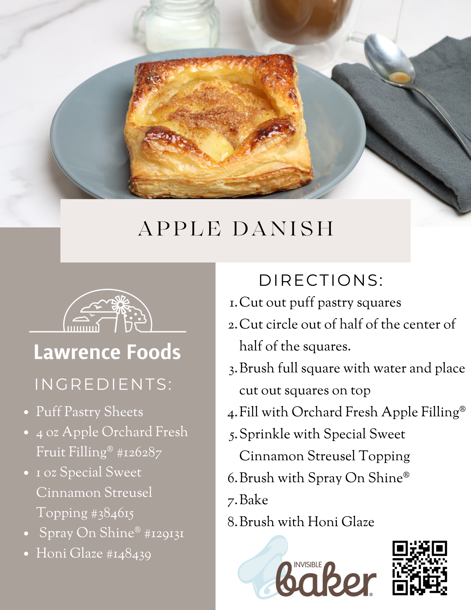 Lawrence Foods Apple Orchard Fresh Fruit Filling® provides delicious full apple slices that bake beautifully into any pastry. Our gentle cooking process ensures that the orchard fresh taste is left in each and every delectable apple slice. Firm crisp apples take the focus in this flakey dessert pastry that is a baked delight.