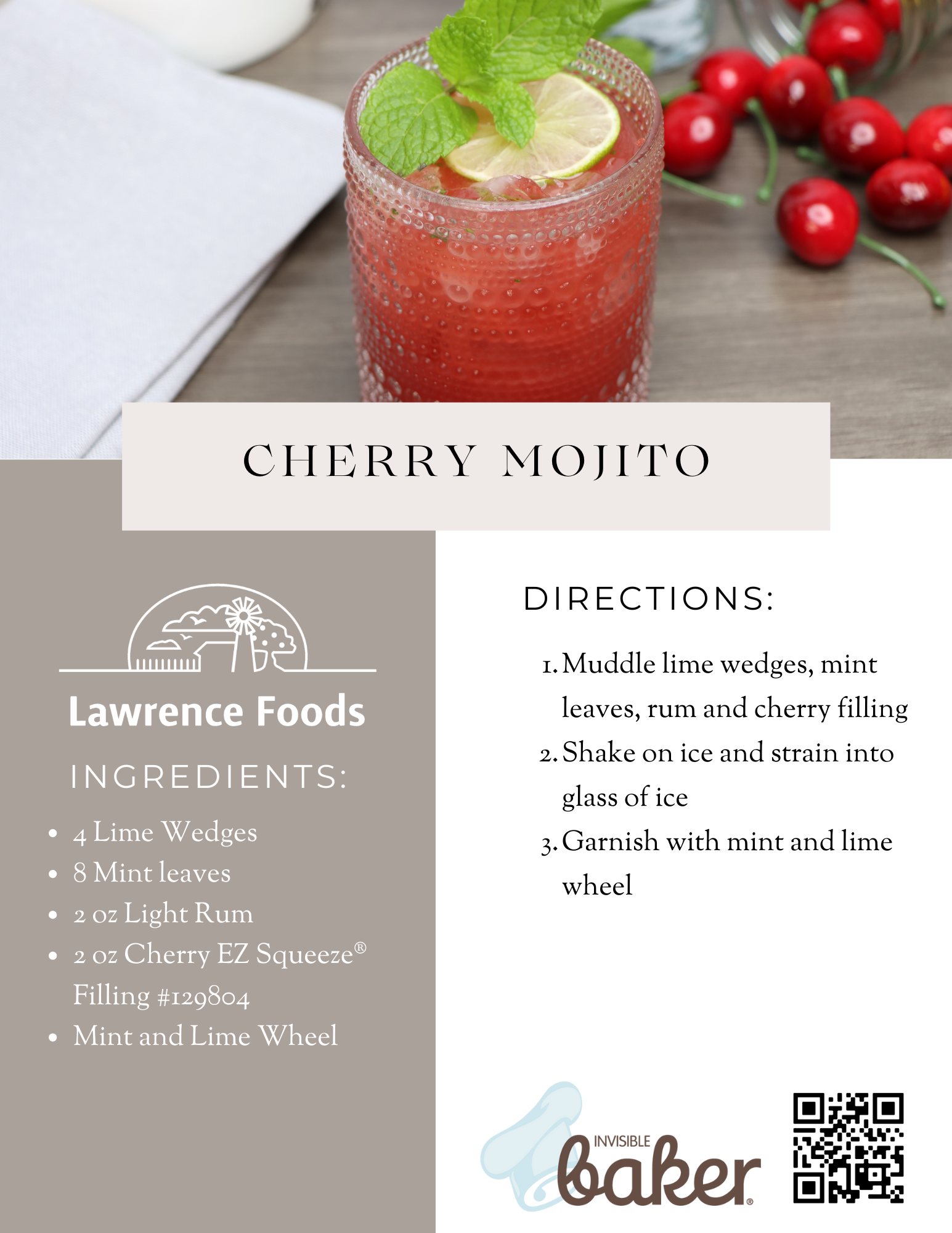 Fresh mint and cherry bring refreshing flavor to this mojito variation that is sour sweet success. Lawrence Foods Cherry Filling melds into the classic cocktail to become even more delicious with the delightful fruit finish.