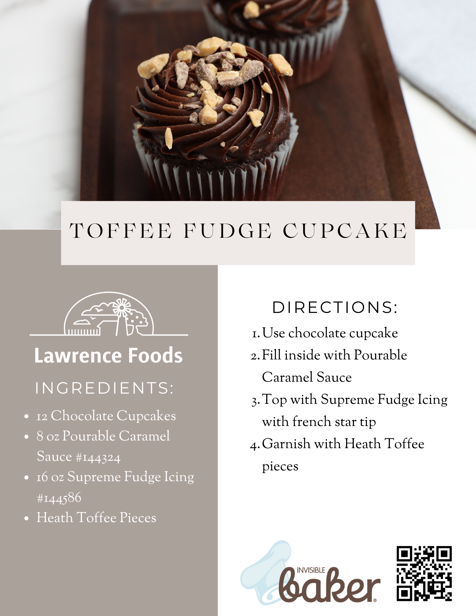 Chocolate lovers can agree that this fudgy toffee cupcake is a chocolate dream. Lawrence Foods Supreme Fudge Icing is a thick creamy delight that makes the ideal moist cupcake with chocolate flavor and high quality. Don’t just top it! No cupcake is complete without a caramel filling!